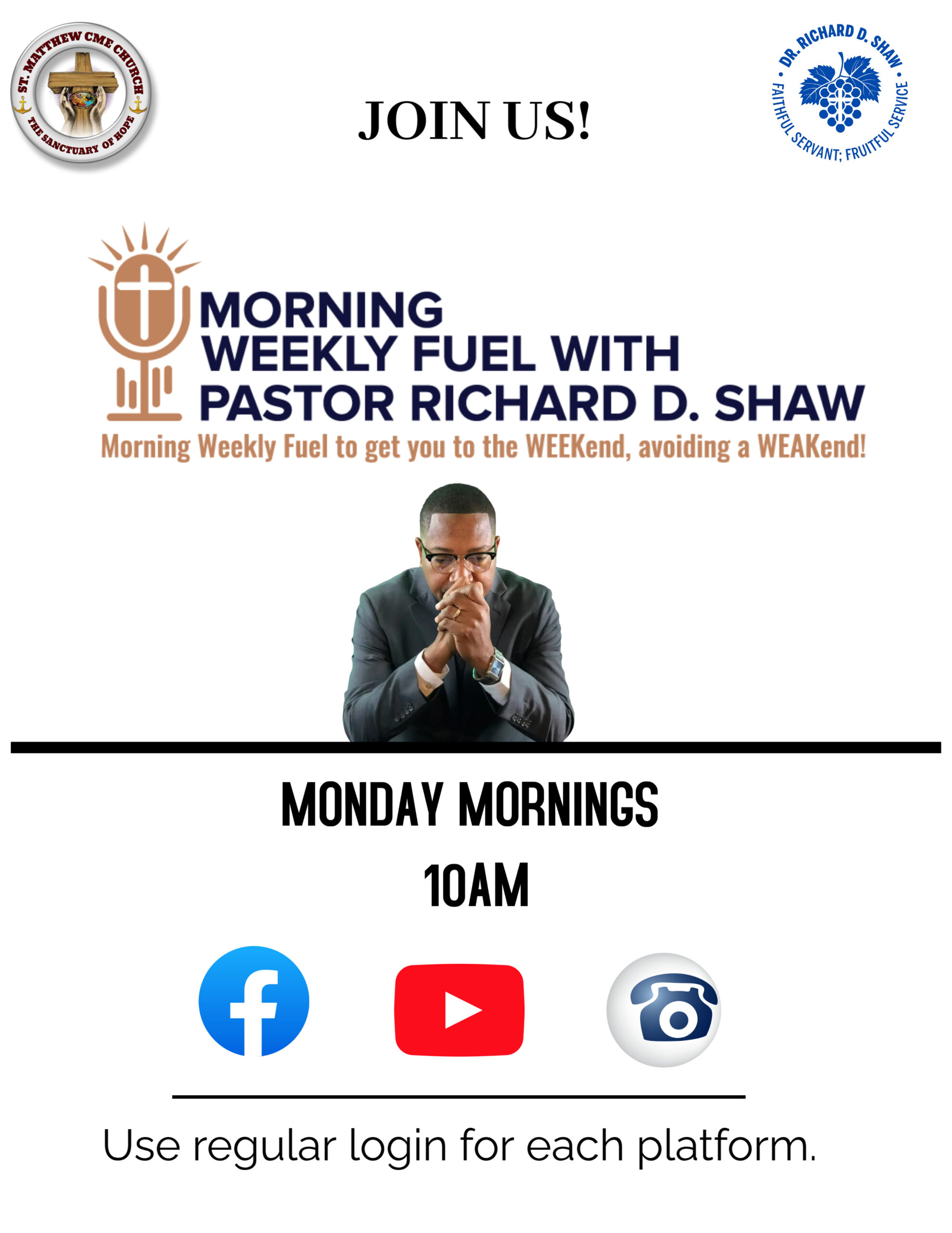 Please remember to email your prayer request or call the church office. stownsell@sbcglobal.net or stmatthewcmeoffice@gmail.com, 414-562-7580.